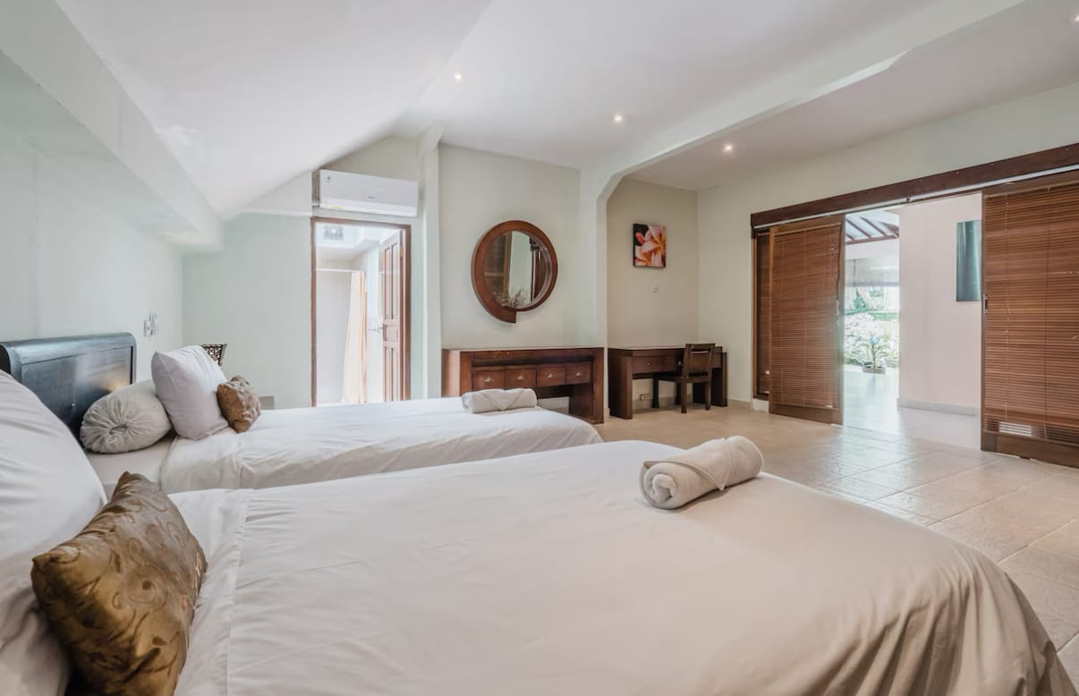 Experience the best of Seminyak from Vista Villas, a private 14-bedroom estate just minutes from Double Six Beach, boutique shops, and some of Bali’s finest restaurants and cafés. Designed for families, large groups, or retreat gatherings, this exclusive collection of three neighboring villas offers the perfect blend of Balinese charm, modern comfort, and exceptional convenience. Set amid lush tropical gardens, the estate features three private swimming pools, multiple open-plan living areas, and a total of 14 air-conditioned bedrooms, each thoughtfully designed to ensure comfort and privacy. Whether you’re hosting a family celebration, a group getaway, or a wellness retreat, Vista Villas provides versatile accommodation in a serene yet central setting.